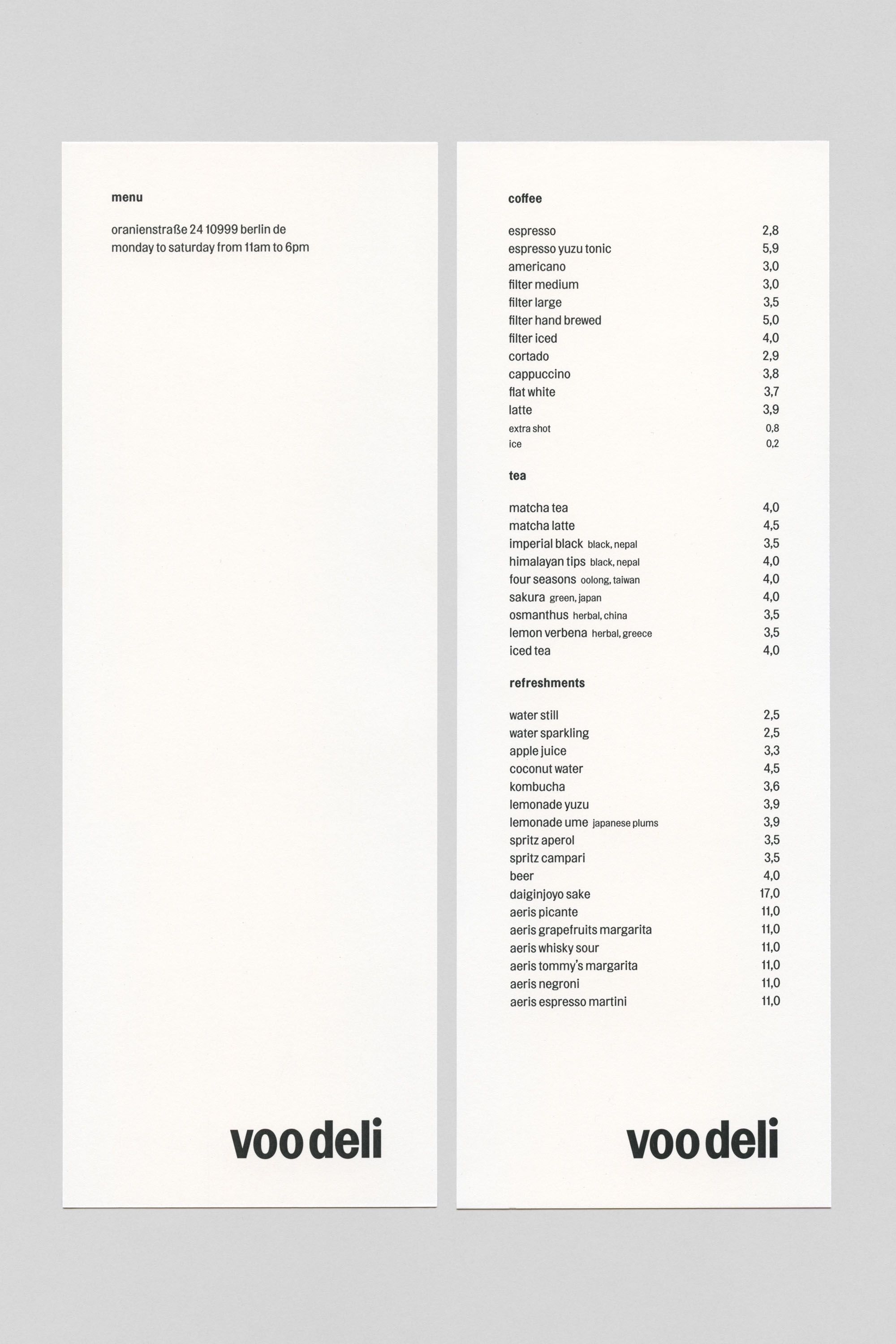 Visual Identity & Menu Designs for Voo Store's "Voo Deli", Berlin